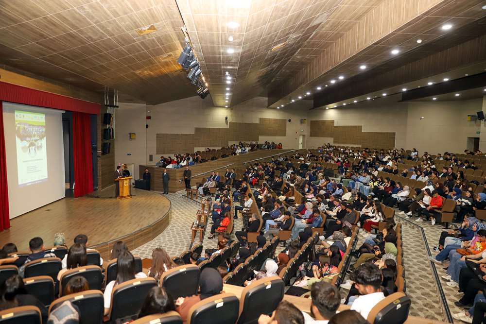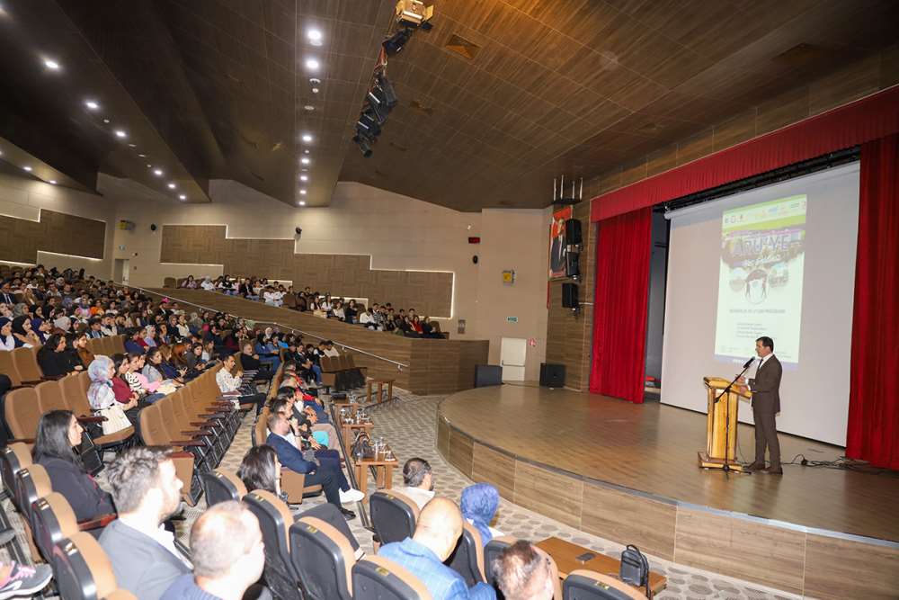 Program, Dr. Öğr. Üyesi Tevfik Fikret Karahan’ın “Akademik ve Psikolojik Uyum” konulu sunumuyla devam etti.Rektörümüz Prof. Dr. Öztürk Emiroğlu: “Bilgiye Karışın, Kendinizi ve Dünyayı Aydınlatın”Programda konuşan Rektörümüz Prof. Dr. Öztürk Emiroğlu, öğrencilerin üniversite yaşamlarını dört temel başlıkta planlamaları gerektiğini belirterek şu değerlendirmelerde bulundu:“Üniversite hayatını dörde ayıracaksınız. Birincisi ders, yani eğitim-öğretim. İkincisi, farklı kültürlerden arkadaşlarla birlikte yaşamak. Üçüncüsü sosyal yaşam; dördüncüsü ise özel hayatınız. Bu dört kategoriyi dengeli biçimde yönetmezseniz sorunlar başlar. Kalp ve kafa diyaloğunu doğru kurarsanız, tıpkı ışık saçan bir projektör gibi hem kendinizi hem çevrenizi aydınlatırsınız.”Rektör Emiroğlu, öğrencileri bilgiye yönelmeye teşvik ederek üniversitenin mottosu olan “Işığa Karışın” ifadesinin derin anlamına dikkat çekti. “Bilgi güçtür.” diyerek öğrencileri araştırmaya, sorgulamaya ve öğrenmeye çağıran Rektörümüz, Ardahan’ın konumunun da öğrenciler için önemli bir fırsat sunduğunu ifade etti:“Ardahan, Türkiye’nin iki kara sınır kapısına sahip nadir şehirlerinden biridir. Hafta sonu dahi kimliğinizle Gürcistan’a veya Nahçıvan’a geçebilirsiniz. Bu imkânı kültürel ve akademik bir zenginliğe dönüştürün. Erasmus+, Mevlâna, Farabi ve Orhun programlarına katılmaktan çekinmeyin. En önemlisi, yabancı dilinizi mutlaka geliştirin.”Konuşmasında Fransız düşünür Alain’in “Aslanın vücudu yediği hayvanlardan oluşur.” sözünü hatırlatan Rektörümüz, öğrencilerin entelektüel gelişimlerini bilgiyle beslemeleri gerektiğini şu sözlerle vurguladı:“İnsanı güçlü kılan şey, beslendiği bilgidir. Aslan nasıl yediklerinden aldığı güçle şekilleniyorsa, siz de aldığınız bilgiyle şekilleneceksiniz. Zihninizi ve ruhunuzu doğru, güçlü bilgilerle besleyin ki hem kendinizi hem çevrenizi aydınlatın.”Rektör Emiroğlu konuşmasının sonunda, Rehberlik ve Uyum Ofisi Komisyonu üyelerine ve programın düzenlenmesinde emeği geçen tüm personele teşekkür etti.Programın devamında Ardahan Ak Parti Milletvekilimiz Sayın Kaan Koç’un mesajı okundu. Milletvekili Koç, mesajında şu ifadelere yer verdi:“Sayın Rektörüm, kıymetli genç arkadaşlarım; 2025–2026 eğitim-öğretim yılı Rehberlik ve Uyum Haftası vesilesiyle Üniversitemizin yeni akademik yılına sağlıklı, verimli ve başarılı bir başlangıç yapmasını temenni ediyorum. Başta siz değerli öğrencilerimiz olmak üzere tüm akademik ve idari kadroya en içten başarı dileklerimi iletiyorum. Genel Kurul çalışmalarımız nedeniyle aranızda bulunamamanın üzüntüsüyle sizleri gönülden tebrik ediyor, üniversite hayatınızın sizlere bilgi, vizyon ve sorumluluk bilinci kazandırmasını diliyorum. Her başlangıç büyük bir yolculuğun ilk adımıdır. Bu yolculukta karşılaşacağınız her deneyim geleceğinizi şekillendirecek bir fırsattır. İnançla, azimle ve umutla ilerlemenizi diliyor, sevgi ve saygılarımı iletiyorum.”Etkinliğin sonunda İl Emniyet Müdürlüğü, İl Jandarma Komutanlığı, İşkur İl Müdürlüğü, Aile ve Sosyal Hizmetler İl Müdürlüğü, Gençlik ve Spor İl Müdürlüğü, Afet ve Acil Durum İl Müdürlüğü, İl Sağlık Müdürlüğü, Yeşilay ve Kızılay İl Başkanlıkları ile Üniversitemizin öğrenci kulüplerinin bilgilendirici stantları ziyaret edildi. Program, pilav ikramıyla sona erdi. Rehberlik ve Uyum Programı yarın da farklı etkinliklerle devam edecek.