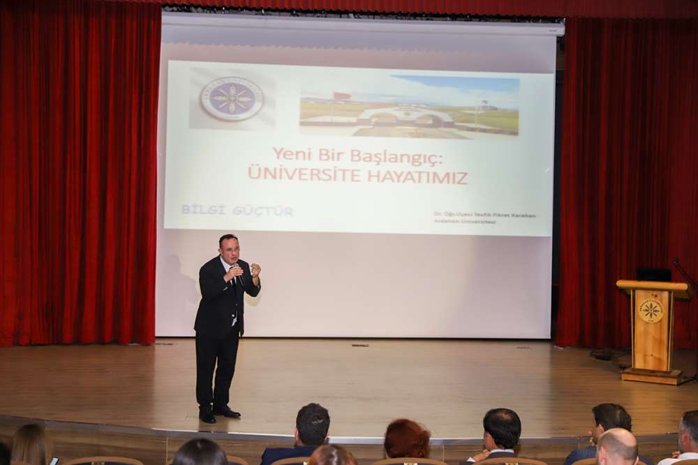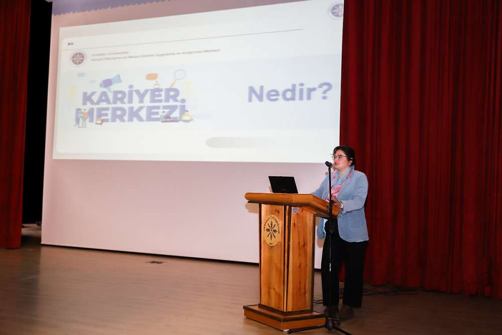 Üniversitemiz 2025–2026 Akademik Yılı Rehberlik ve Uyum Programı’nın ilk etabı, 7 Ekim 2025 tarihinde Aşık Şenlik Kültür Merkezi’nde geniş bir katılımla gerçekleştirildi. Ardahan Üniversitesi Rehberlik ve Uyum Ofisi koordinatörlüğünde düzenlenen programa; Rektörümüz Prof. Dr. Öztürk Emiroğlu, Rektör Yardımcımız Prof. Dr. Zafer Aykanat, fakülte dekanları, yüksekokul müdürleri, daire başkanları, kamu kurum ve kuruluşlarının temsilcileri, akademik ve idari personel ile öğrenciler katıldı.Program; Saygı Duruşu ve İstiklal Marşı’nın ardından Ardahan Üniversitesi Tanıtım Filminin izlenmesiyle başladı. Açılış konuşmasını, Rehberlik ve Uyum Ofisi Koordinatörü Doç. Dr. İbrahim Okan Akkın yaptı. Ardından Öğrenci İşleri Daire Başkanı Evrin Yıldız, Sağlık Kültür ve Spor Daire Başkanı Metin Çimli, Uzaktan Eğitim Uygulama ve Araştırma Merkezi Müdürü ve Bilgi İşlem Daire Başkanı Öğr. Gör. Sinan Üst, Kütüphane ve Dokümantasyon Daire Başkanlığı personeli Pakize Karlı, Ortak Dersler Koordinatörü Öğr. Gör. Feryal Bulut, Dış İlişkiler Ofisi Koordinatörlüğü’nden Öğr. Gör. Mustafa Ünsal, Kariyer Planlama ve Mezun İzleme Uygulama ve Araştırma Merkezi Müdürü Dr. Öğr. Üyesi Zeynep Uludağ ile Sürekli Eğitim Uygulama ve Araştırma Merkezi Müdürü Doç. Dr. Özlem Eştürk bilgilendirme sunumlarını gerçekleştirdiler.