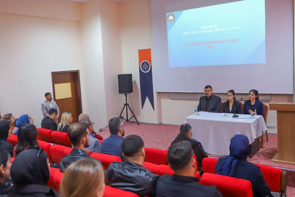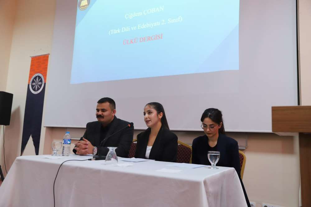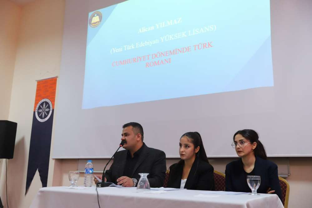 Moderatörlüğünü Muhammet Can Arayan’ın üstlendiği panelde; Cumhuriyet döneminde romanın evrimi üzerine Alican Yılmaz, şiirdeki değişim ve dönemin ruhu üzerine İslim Beşli, Ülkü Dergisinin toplumsal ve kültürel hayata katkıları üzerine ise Çiğdem Çoban isimli Türk Dili ve Edebiyatı Bölümü lisansüstü ve lisans öğrencileri sunumlarını gerçekleştirdiler.