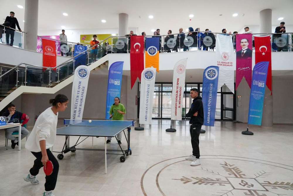 Üniversitemiz Sağlık Kültür ve Spor Daire Başkanlığı’na bağlı Amatörspor, E-Spor ve Dijital Oyunlar Kulübü ile ARÜ Genç Ofis iş birliğinde gerçekleştirilen masa tenisi turnuvası başarıyla tamamlandı. Öğrencilerimizin yoğun katılım sağladığı turnuvada müsabakalar, yüksek rekabet ortamında ve dostluk atmosferi içinde gerçekleşti.