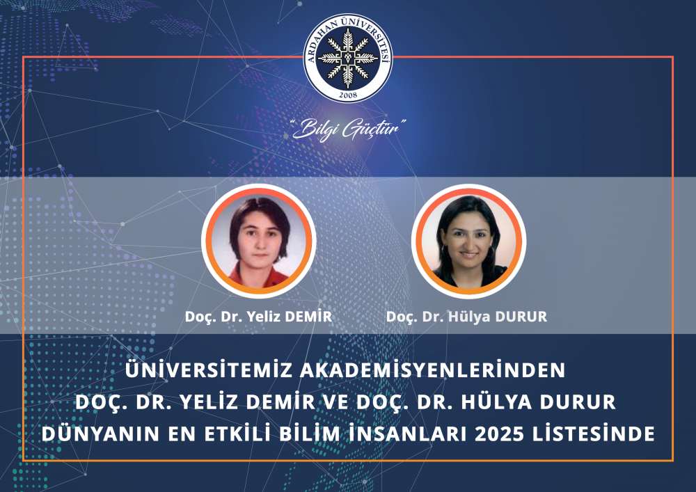 Üniversitemiz Akademisyenlerinden Doç. Dr. Yeliz Demir ve Doç. Dr. Hülya Durur Dünyanın En Etkili Bilim İnsanları 2025 Listesinde
